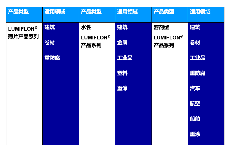 01 Lumiflon® FEVE氟樹脂產(chǎn)品一覽