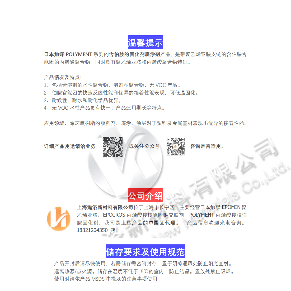 日本觸媒 POLYMENT 水性支鏈含伯胺的固化劑底涂劑 KX-EK-100R-上海瀚洛新材料有限公司